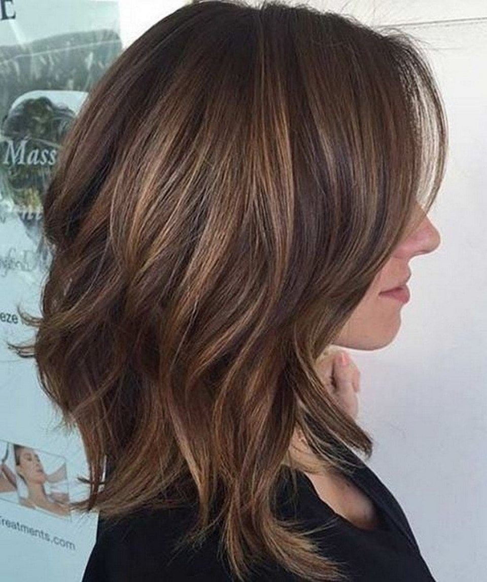 Тем, кто не может выбрать какое окрашивание подойдет для темно-коричневых и каштановых локонов, стоит остановиться на технике шатуш. В ходе процедуры выполняют осветление некоторых прядей, что позволяет им выглядеть природно. Добавляя необычные оттенки, можно получить глубину цвета.