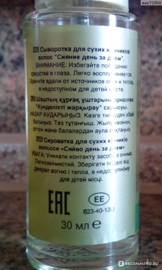 Указания : Слегка распылите на расстоянии около 8 дюймов от сухих волос, чтобы усилить блеск и сохранить увлажнение, если необходимо.