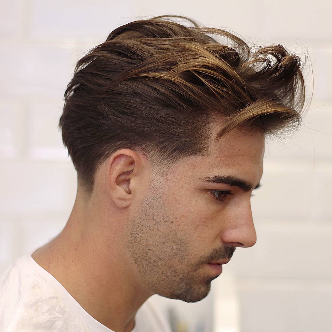 Еще одна мужская прическа средней длины, которую вы можете использовать для прически средней длины на макушке, — это еще один вариант коротких боковых и длинных прядей на макушке.