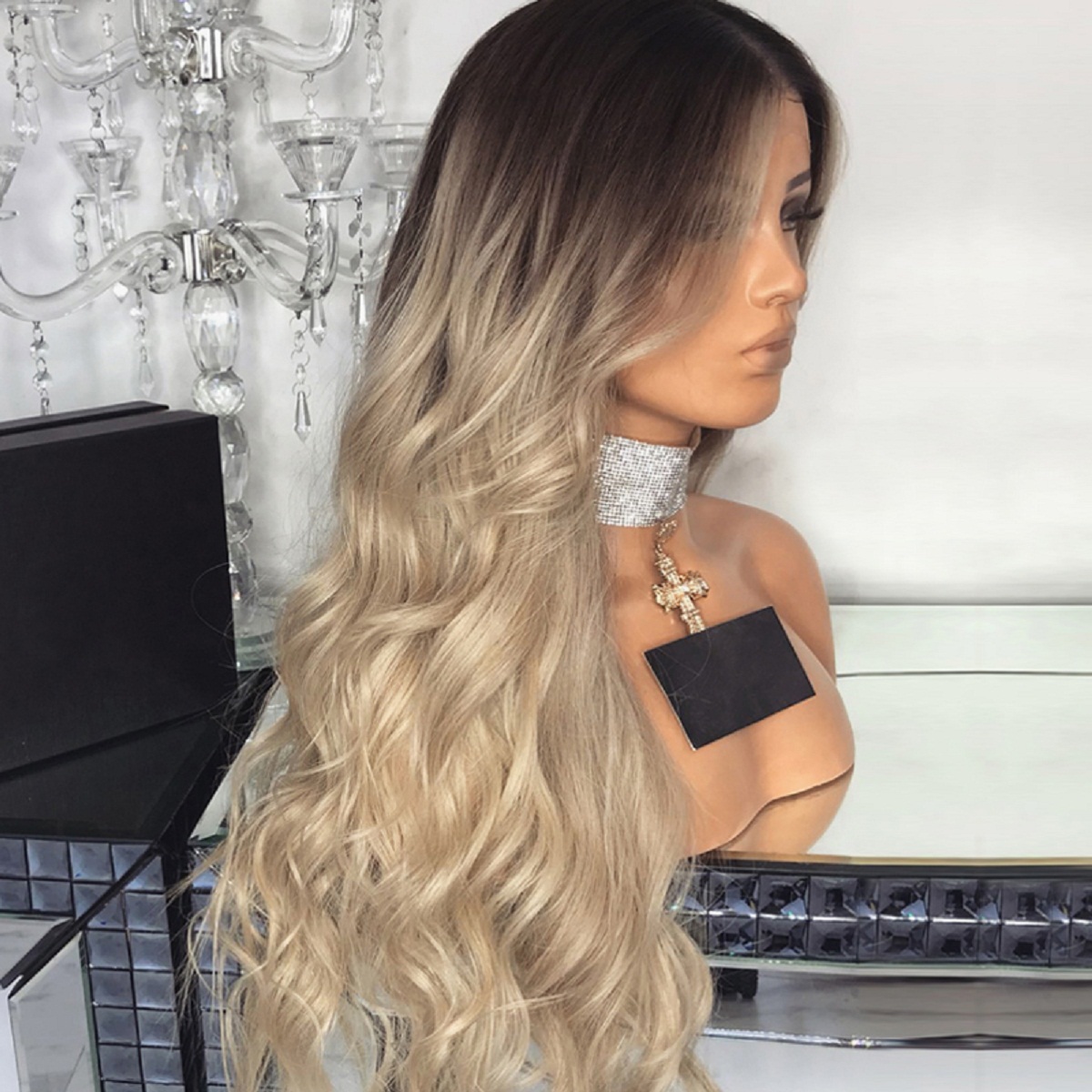 Она носит FINE Halo цвета «Бежевый блондин + темно-русый».