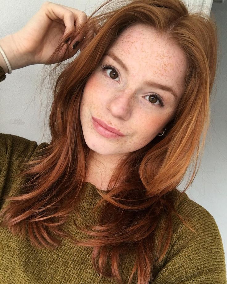 Натурального рыжего оттенка волос невозможно получить путем окрашивания, потому как такой тон дается девушкам при рождении. Только натуральные рыже смогут насладиться подобным оттенком сполна. Оттенок прекрасно дополняет веснушки на коже лица, что делает образ каждой натуральной рыжеволосой красотки — солнечным.