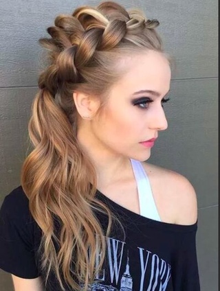 - Разделите волосы по центру и вытяните две пряди перед ушами.Затем, заплетите две легкие косы в стиле Пеппи Длинный чулок, наклоняя назад, чтобы создать натяжение вдоль линии роста волос.