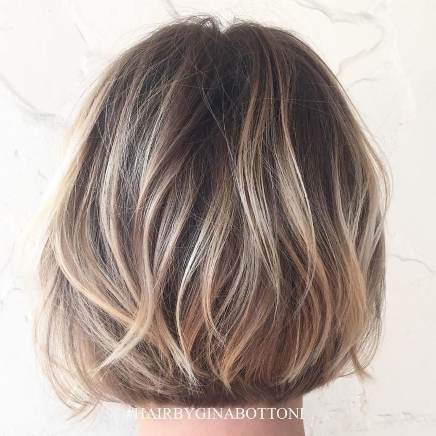 Стриженные бобы А-силуэта всегда в тренде. Подумайте о стрижке, если вы хотите попробовать укороченный балаяж, но вам не хочется делать слишком короткую стрижку. Окрашивание дает стилям больший контроль над глубиной и временем ваших бликов, поэтому вы можете снимать платиновые пряди, не рискуя повредить свои волосы.
