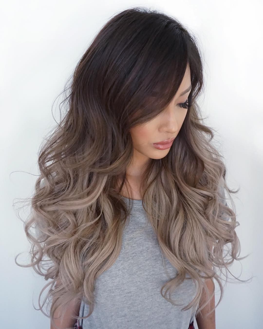 Светлые серебристо-русые тона — новая горячая тенденция в современных прическах. Вы можете усилить свой цвет омбре, заменив более теплые светлые тона холодными серебристо-металлическими оттенками. Темно-каштановые волосы, переходящие в стально-серый, создают привлекательный стиль, который дополняет кожу теплым оттенком.