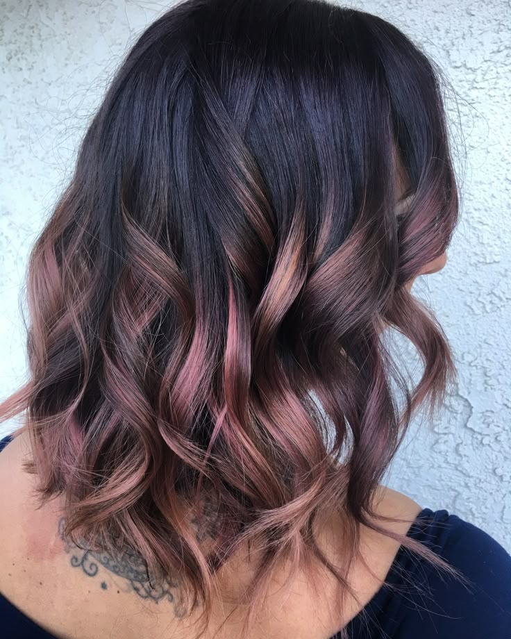 Пряди с розовым оттенком — это все, что нужно для праздничного сезона… Выбирайте омбре, если сплошной пастельный, кажется немного пугающим.
