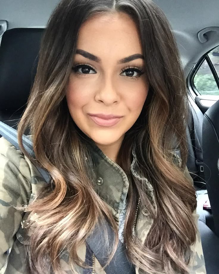 Омбре не обязательно должно быть слишком очевидным, добавив пару карамельных бликов посередине и на концах, вы слегка украсите ваши локоны.