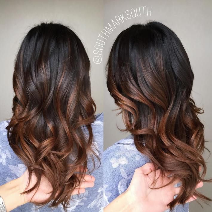 Прохладным брюнеткам стоит попробовать добавить теплые медовые блики на кончики, чтобы создать летнее омбре.