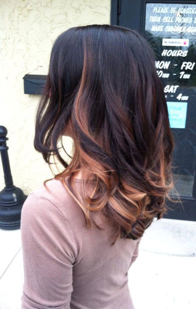 Для брюнеток действительно бывает тяжело подобрать тот оттенок, который кардинально изменит имидж. Если вы сомневаетесь, красить кончики или нет, посмотрите несколько фотографий. На них изображены брюнетки с омбре. Посмотрите, чтобы оценить ваше желание попробовать эту технику на себе.