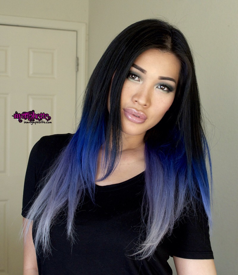 Заключается в сочетание холодных и светлых тонов. Такая нестандартная техника окрашивания омбре на черных волосах проводится только в салоне специалистами, которые смогут придать прическе необходимый легкий и воздушный эффект. Для темных натуральных волос необходимо брать краску на 2 тона светлее. Если волосы окрашенные, то нужно предварительно пройти процедуру смывания красителя и в зависимости от желаемого результата применить агрессивные осветляющие составы.