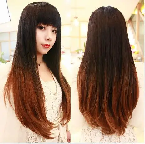 Это настолько тонко, что трудно сказать, где начинается азиатское омбре с челкой. Такая смесь идеальна для густых и прямых волос.