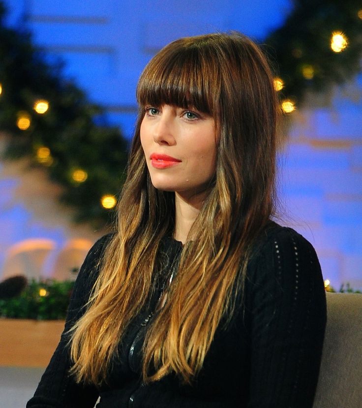 Еще одна идея для омбре на средние волосы с челкой — тончайший переход натуральных цветов к кончикам, причем для тонирования лучше взять сияющие красители, например L’Oréal Pro Majirel Glow. Вспомните Аннабель Портер из сериала «Парки и зоны отдыха» — вам нужен именно такой эффект перелива с ослепительным блеском на прядях.