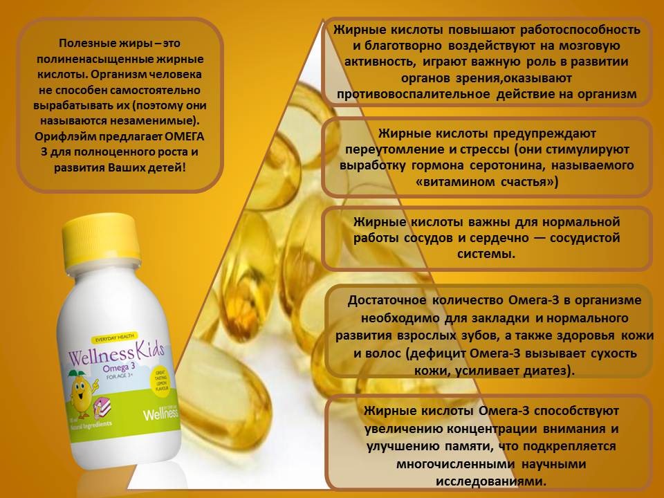 Жирные кислоты укрепляют сосуды, повышают их эластичность, уменьшают риск развития тромбоза, улучшают состояние мочеполовой системы, фертильность и сексуальную активность, а также служат профилактикой аденомы простаты. Польза Омега-3 для детейНехватка Омега-3 в детском возрасте может грозить задержкой роста и развития, частыми простудными заболеваниями, повышенной утомляемостью, снижением когнитивных способностей. Жирные кислоты в рационе ребенка улучшат его иммунитет и повысят сопротивляемость вирусам, укрепят нервную систему и помогут легче переносить стрессы, окажут благотворное влияние на мозговую деятельность — память, концентрацию внимания. Кроме этого, Омега-3 помогают против тревожности и беспокойства, оздоравливают кожу в подростковом периоде. Омега-3-6-9 — чем отличаются и что лучшеОсновное отличие состоит в том, что человеческий организм сильнее всего нуждается именно в не синтезируемом Омега-3, в то время как Омега-6 и Омега-9 в больших количествах содержатся в пище, которая употребляется практически ежедневно.
