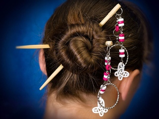 Японские палочки могут быть как функциональными,так и декоративными аксессуарами. Они держат хорошо все прически, кроме того, вы можете зафиксировать ими даже шиньон. Верхняя часть палочек может быть икусно украшена симпатичными висюльками или резьбой. Типичные и традиционные палочки для волос прямые, в то время, как в новых тенденциях можно увидеть и волнистые или в различной степени изогнутые варианты.