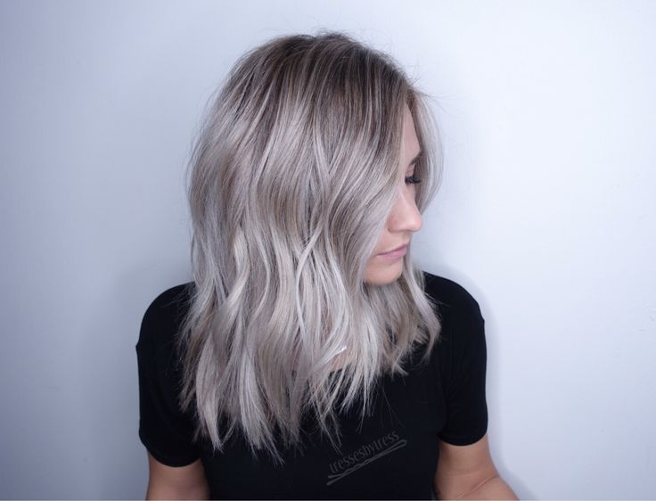 Шикарный мягкий жемчужно-пепельный блонд на длинных волнах — Пепельный блонд для волос средней длины