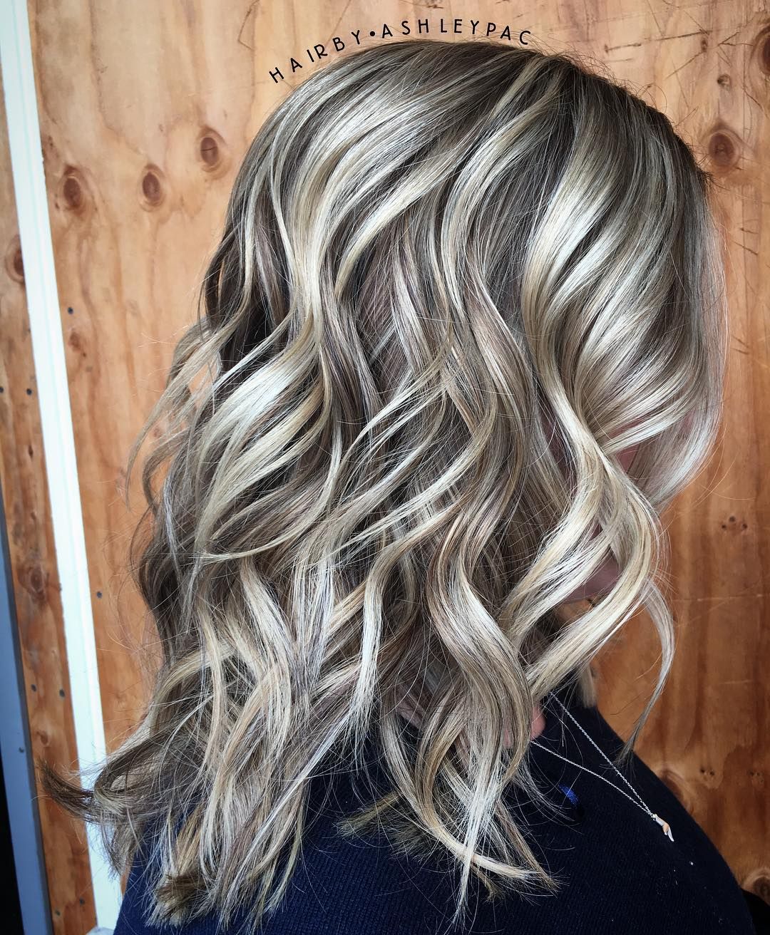 ИсточникСредние, светлые, темные и грязно-пепельные блондины объединяются для создания этого потрясающего балаяжа. Волнистые от природы локоны выглядят такими здоровыми благодаря светлым оттенкам, а грязный, темно-пепельный блонд подчеркивается косой.