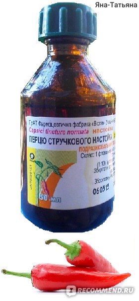 Настойку перца стручкового можно сделать дома: в 200 мл. водки или спирта порезать два стручка красного жгучего перца и настаивать в темном месте две недели, а можно купить в аптеке готовую настойку за смешную цену, зачем тогда делать ее дома?