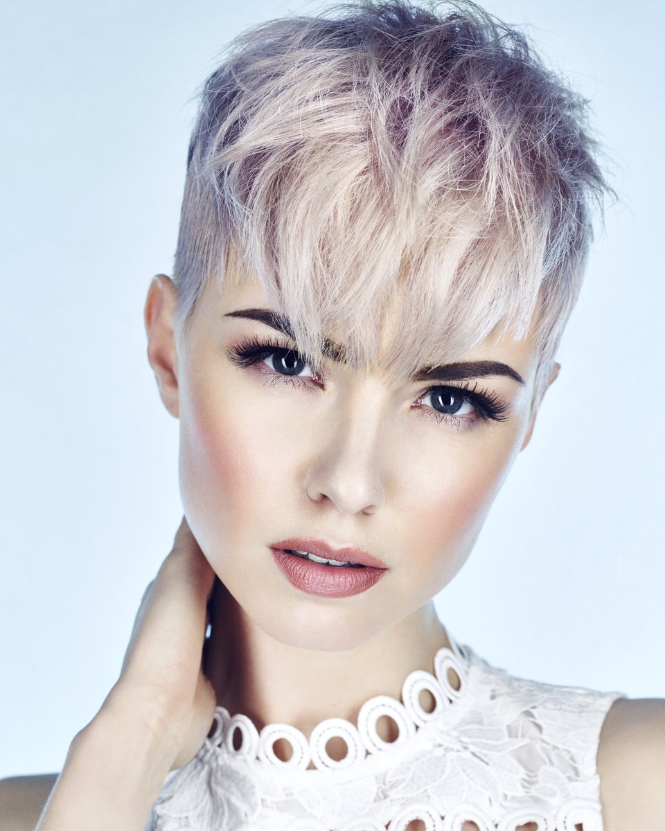 - Короткая пикси полностью открывает лицо. Это означает, что ваш макияж всегда должен быть безупречен.