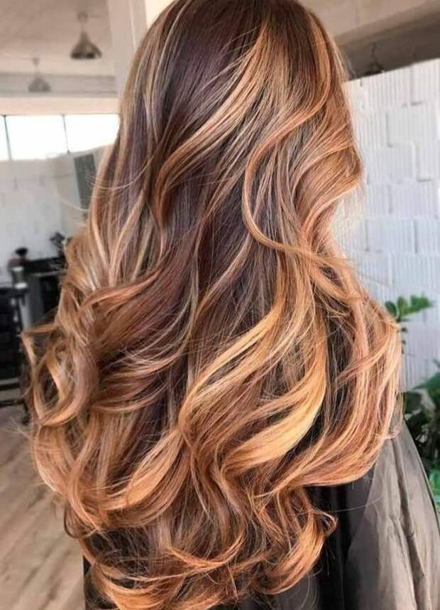 Оранжево-коричневый цвет волос на макушке медленно переходит в медный цвет, а затем в желтый, чтобы получился этот суперкрасивый образ.