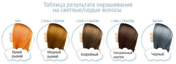 Для получения светлого цвета волос с помощью смесь 4 частей хны и 8 частей басмы, время выдержки 30 мин, с увеличением времени окрашивания до 1,5 ч до коричневого цвета.