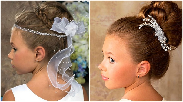 На 8 марта самым хорошим дополнением к причёске станут цветы. Конечно, живые цветочки рвать не нужно, подойдут декоративные. Сейчас продаётся масса резинок, заколок, украшенных цветами. Отлично будут смотреться заколки с цветами — ромашками. Такие аксессуары прекрасно подойдут для праздника весны и осени. На день рождения девочке как королеве торжества можно украсить причёску короной или диадемой. Для 1 сентября, несомненно, самыми подходящими аксессуарами станут белые ленточки, банты, заколочки с бантиками. На выпускной в садике и начальной школе для украшения причёски подойдут стразы, блёстки, яркие ленты, стильные заколки.