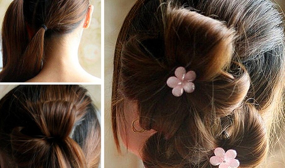 - Резинка-цветок – это универсальное украшение. С ее помощью можно создать красивую повседневную прическу.