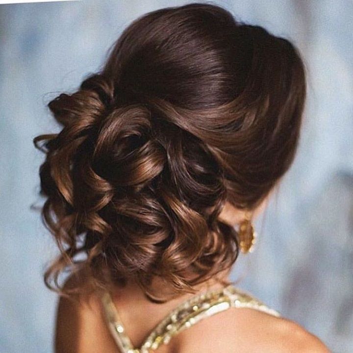 Это модифицированная версия вышеупомянутого низкого бокового пучка со средней частью. Вам просто нужно заплести тонкую прядь волос и закрепить ее в пучок для дополнительного стиля.