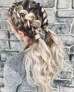 - Затем создайте две-четыре низких косы и попробуйте скрутить каждую косу, пока они не превратятся в локоны, а затем закрепите их между ними.