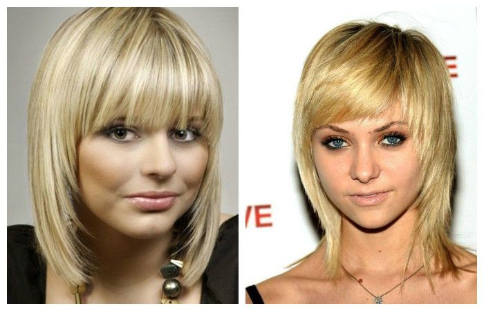 Что касается обладательниц широкой линии скул и подбородка, а также низкого лба, то сгладить и смягчить черты можно при помощи рваной либо косой челки с каскадом средней длины.