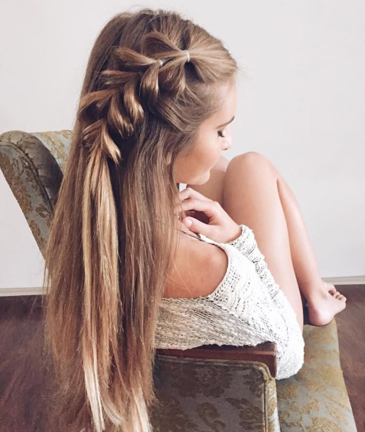 Если вы хотите почувствовать себя принцессой Диснея, сделайте бант из волос и заставьте все вокруг повернуться с помощью этого полураспущенного лука.
