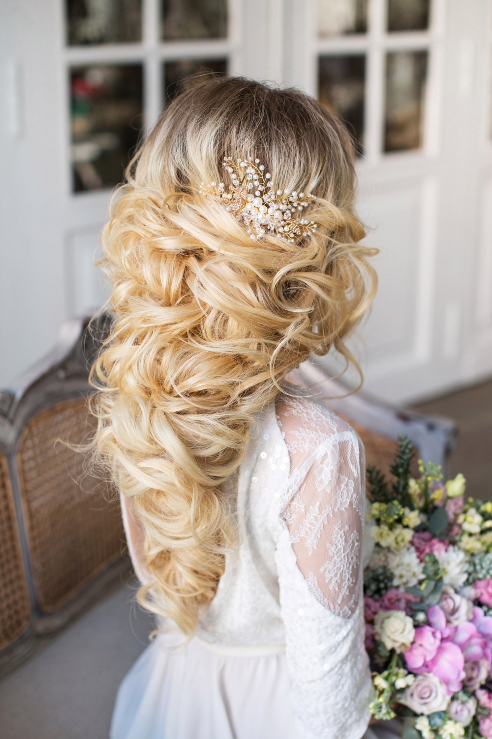 10. Свадебная прическа на длинные волосы каскадом из Mogra