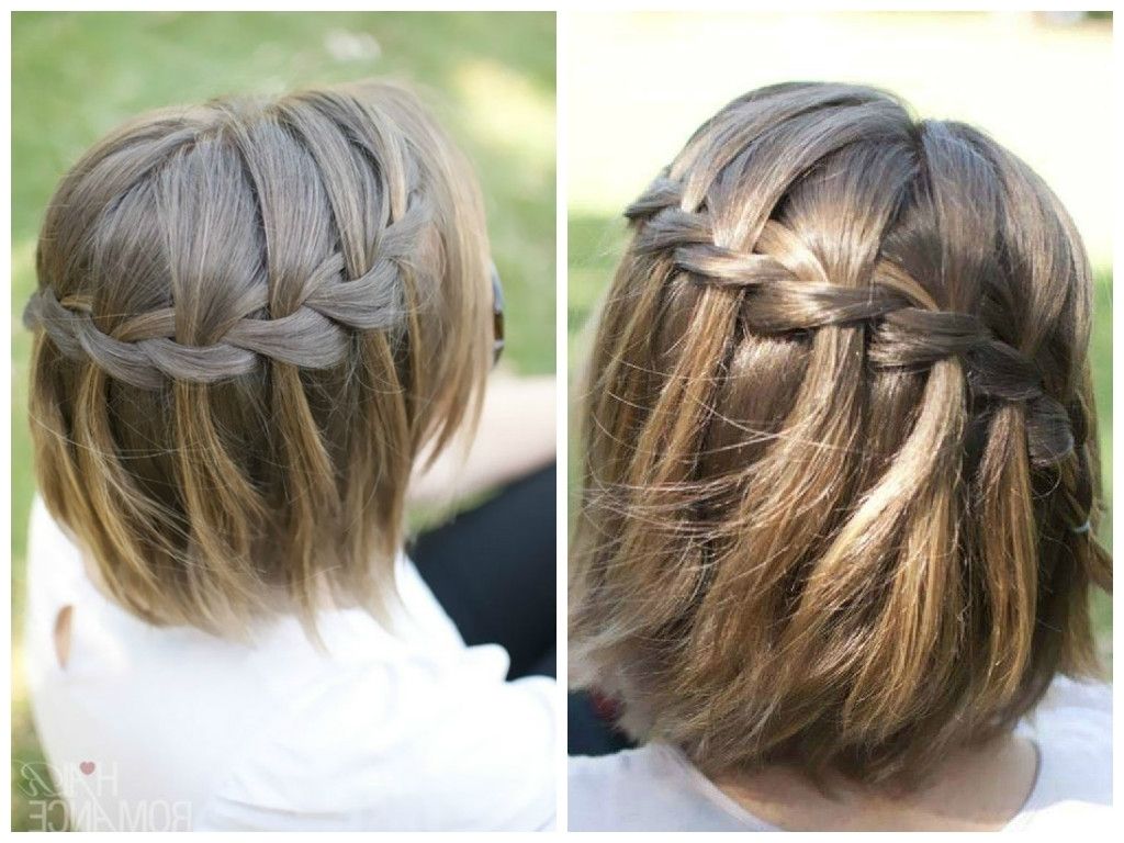 Отличным решением и украшением короткой прически станет французский водопад, суть которого состоит в том, что коса плетется от виска до виска по косой линии. Благодаря ниспадающим сквозь плетение прядям, прическа приобретает необычный вид. Французский водопад одинаково хорошо смотрится на длинных, средних и коротеньких волосах.