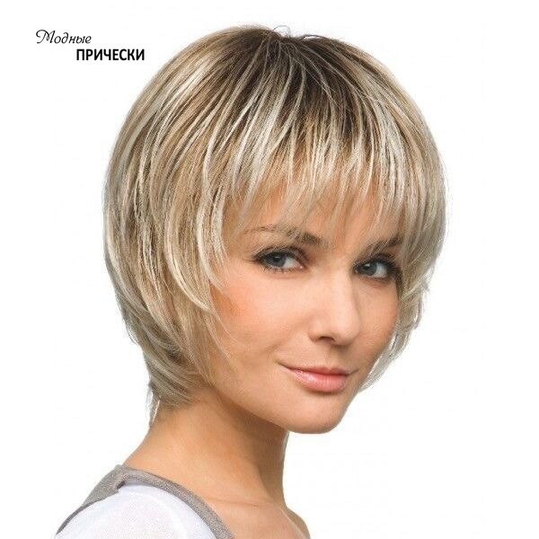 Далее у нас есть модная блондинка. Волосы спереди немного длиннее, чем сзади, и у них короткая челка, слегка зачесанная на одну сторону.Нам нравятся тонкие слои, поскольку разная длина придает волосам текстурный вид. Это великолепный вариант прически, который подойдет женщинам, которые хотят новую стильную стрижку.