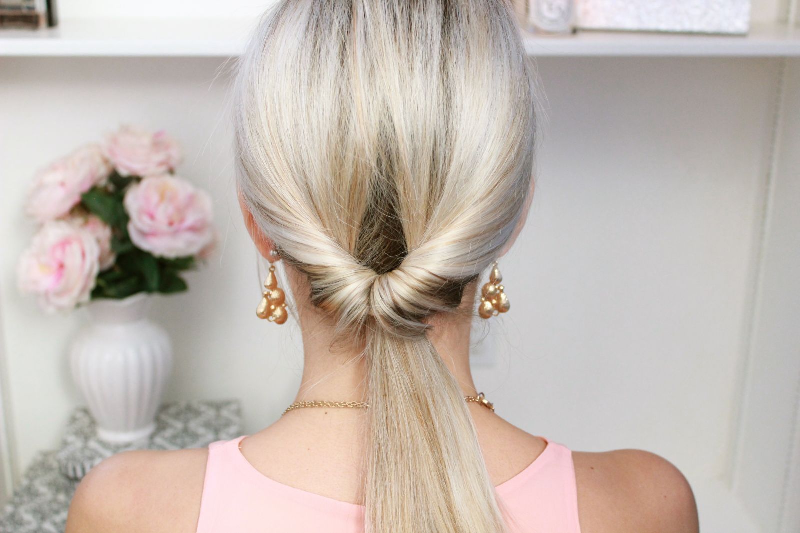 Очень быстрая, но симпатичная прическа, подходящая, как и для рабочего времени так и для прогулок. Расчешите волосы, затем завяжите их в обычный хвост, не сильно закрепляя хвост резинкой. Когда хвост будет завязан, между резинкой и основными волосами сделайте дырочку и просуньте туда ваш хвост. Он как бы вывернется наизнанку, что получиться довольно таки красивым хвостом.