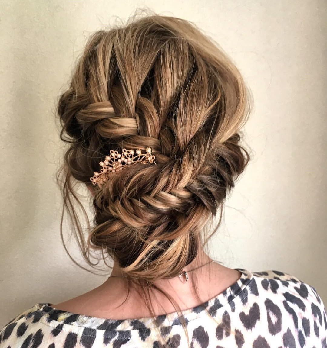 - Зафиксировать заколкой, резинкой и прическа готова.
