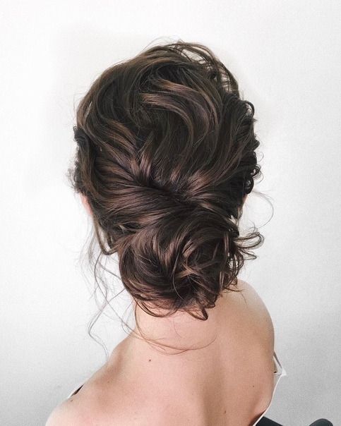 Секрет этой причёски – в гармоничном соединении простоты и шика. Особенно она подходит обладательницам густых и длинных волос, которые дадут необходимый объём этой причёске. Накрутите локоны на крупные бигуди или плойку большого диаметра, переплетите между собой и соберите в изысканный пучок, а отдельные пряди выпустите спереди и по бокам для более непринуждённого образа.