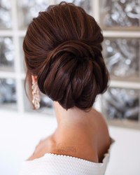 - Фиксируем свадебную прическу при помощи шпилек (не менее 4-х), сбрызгиваем лаком. Нужно проследить, чтобы пучок был идеально гладким, и не торчали отдельные волосинки.