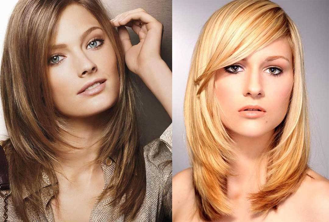 На средние волосы существует множество универсальных стрижек и причесок в вариантах без челки, как и в случае длинных волос, – каскадная стрижка, лесенка и им подобные. Однако волосы средней длины сложнее укладывать, чем длинные и короткие. Если неравномерную стрижку взбить, это придаст ей объема, но зрительно увеличит лицо в ширину. Поэтому девушкам с круглыми лицами рекомендуется делать гладкую укладку.