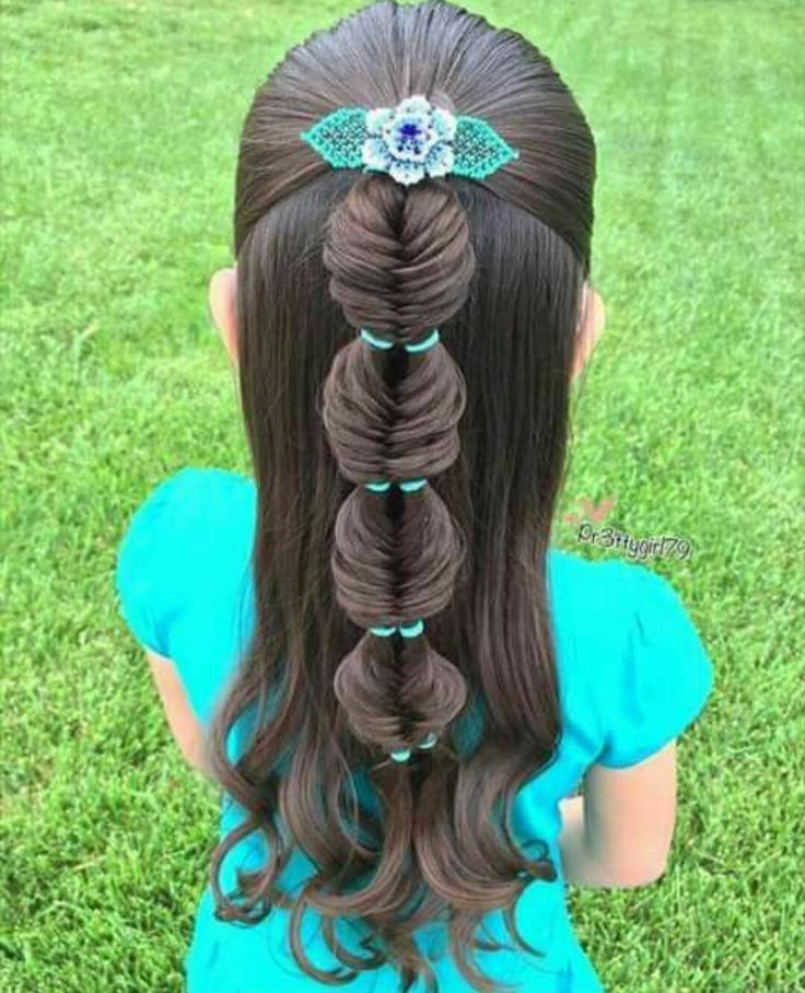 А вот как выглядит детская прическа на длинные волосы своими руками, можно увидеть на фото в статье.