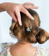 - Закрепите два высоких хвостика в области висков — над ухом. Используйте красивые заколки, яркие резинки, для праздничного варианта — пышные банты.
