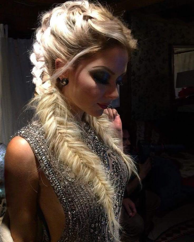 Если вам нужно уложить свои длинные светлые волосы наполовину в непринужденной прическе, которая в настоящее время может привлекать внимание, попробуйте эту французскую косу в стиле «рыбий хвост», чтобы отвести волны далеко от лица и закрепить их в неаккуратном пучке наверху.