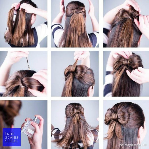 - Уложите волосы в виде банта, закрепив его шпильками.