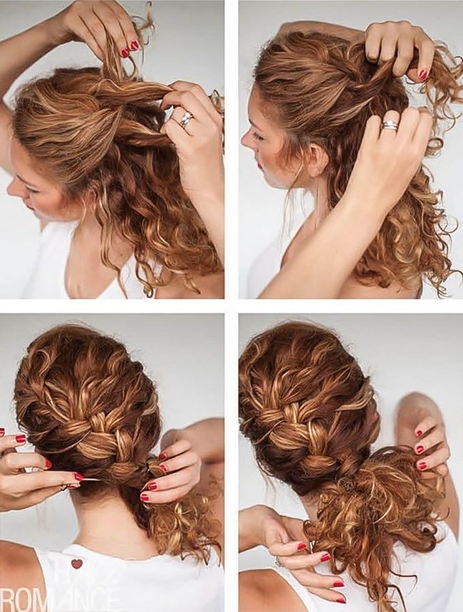 Если у девушки кудрявые пряди, то процесс создания прически отличается своей простой и быстротой. Чтобы создать легкий и женственный образ, необходимо отделить локон сбоку и создать из него жгут. Его кончик свернуть в виде кольца и скрепить при помощи заколки.