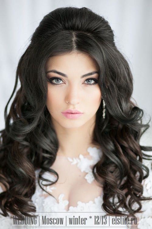 В первом случае необходимо учесть, что важно соблюдать сочетание с фатой: можно сделать как легкие кудри, так и прямые пряди.