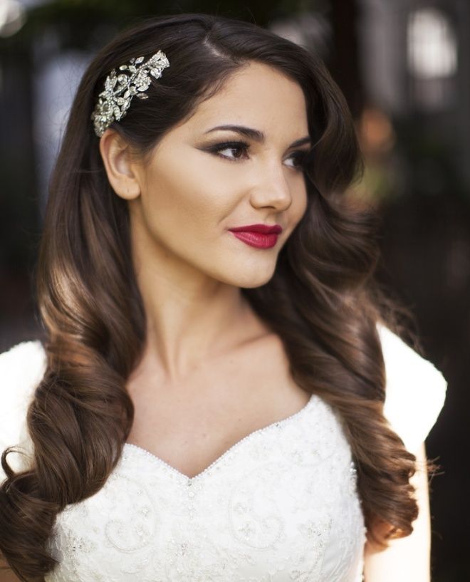 Чтобы создать гармоничный свадебный образ, можно ограничиться обыкновенной укладкой в сочетании с закрученными локонами – такая прическа символизирует чистоту и женственность, а также проста в создании.