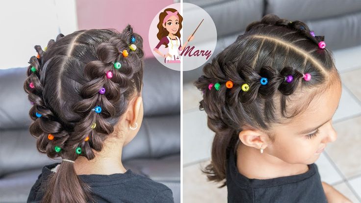 Чтобы создать нежную и женственную прическу без особых усилий, соберите волосы девочки в не сильно тугой хвост на затылке. Затем у основания сделайте отверстие в волосах и проверните в него сам хвост.