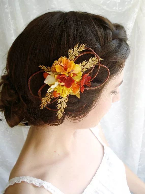 Самые потрясающие и невероятные украшения можно создать с помощью цветов. Любая композиция и дизайн, выполненные с помощью цветов, никогда не ошибутся, чтобы ошеломить и удивить всех, один из таких стилей был выполнен с красивыми и яркими цветами в этом стиле, и поэтому он просто идеален для осеннего сезона. В мягкие локоны ваших волос красиво вплетите маленькие бутоны цветов, устроив их венком вокруг гривы и кончиков с букетом цветов. Это самый элегантный и женственный стиль, который выделит вас из толпы.