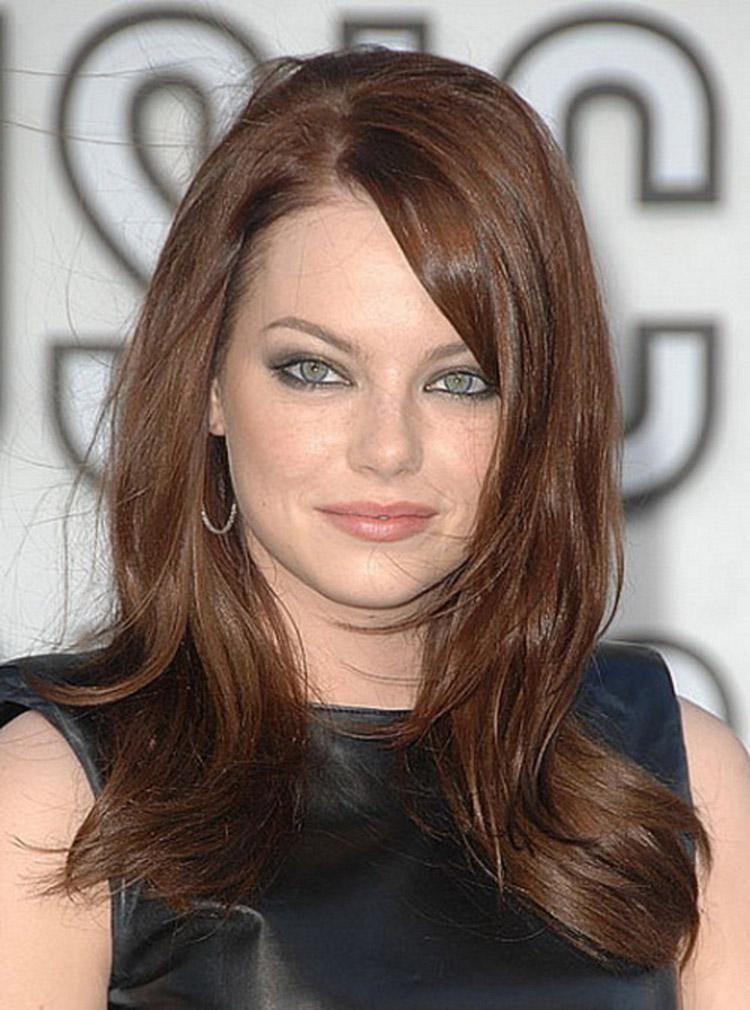 Некоторые девушки делают из себя жгучую брюнетку. Но, эффектно такой цвет на круглом и овальном лице не смотрится. Он добавляет несколько лет и выглядит слишком тяжело. Лучше будет сделать легкое осветление волос (один из стилей мелирования). Так лицо будет выглядеть нежнее и лучше.
