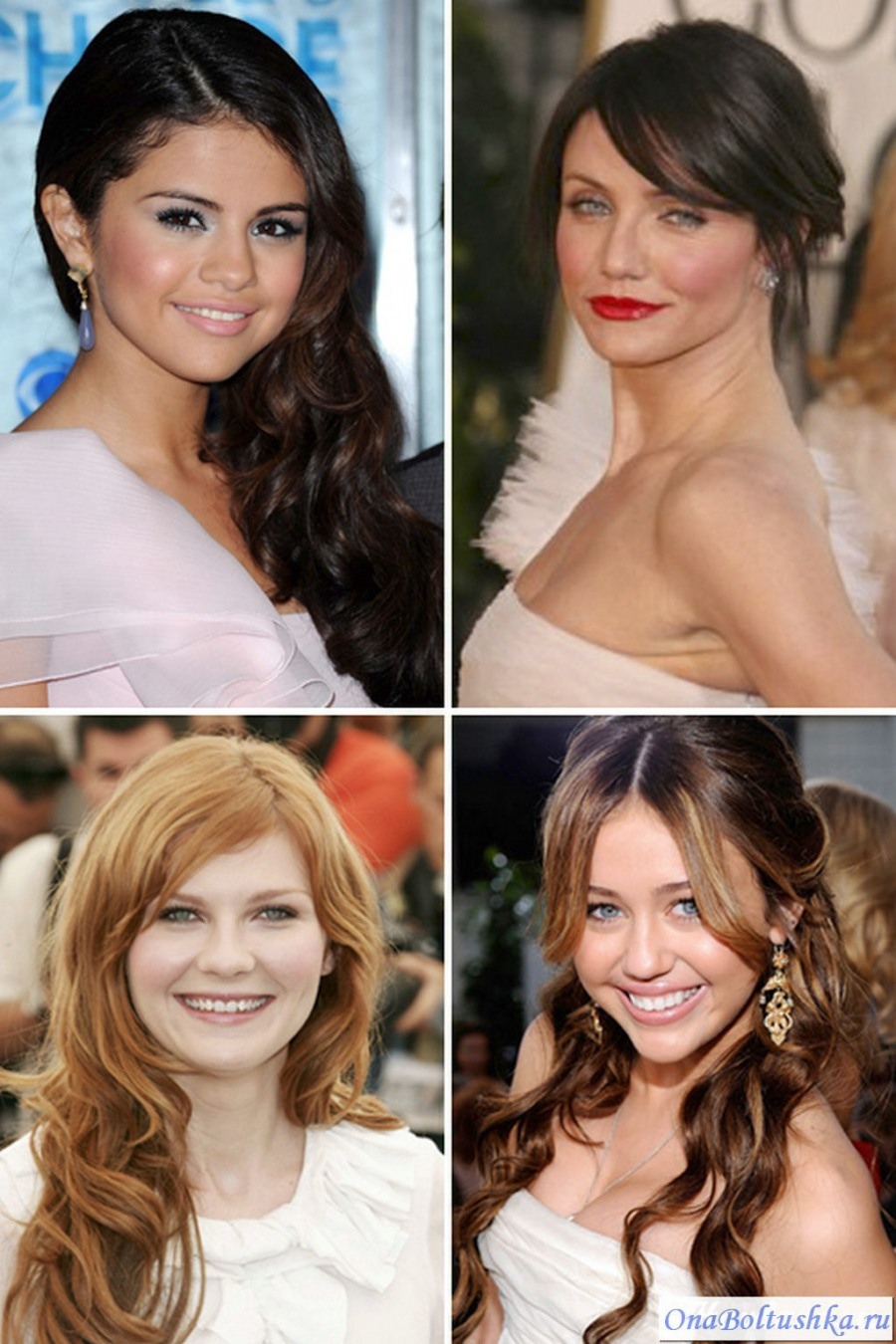 Локоны. Девушки с роскошными длинными волосами могут позволить себе сделать обворожительные локоны. Но для круглолицых представительниц прекрасного пола необходимо делать кудри от линии ниже подбородка. А для вечернего или праздничного образа достаточно завить волосы и убрать их назад.