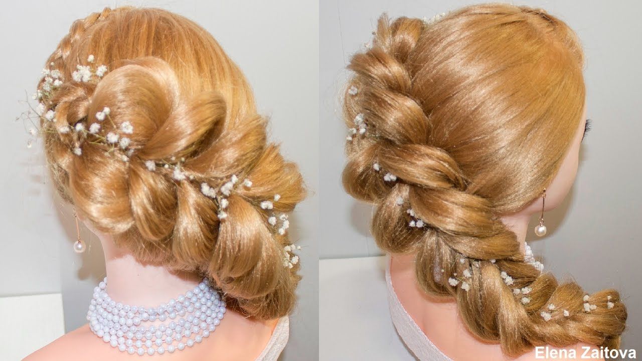 Элегантно и шикарно выглядит коса, уложенная на затылке. С небольшим мастерством эта прическа будет смотреться как профессионально выполненная парикмахером. Видео урок вы найдете ниже.