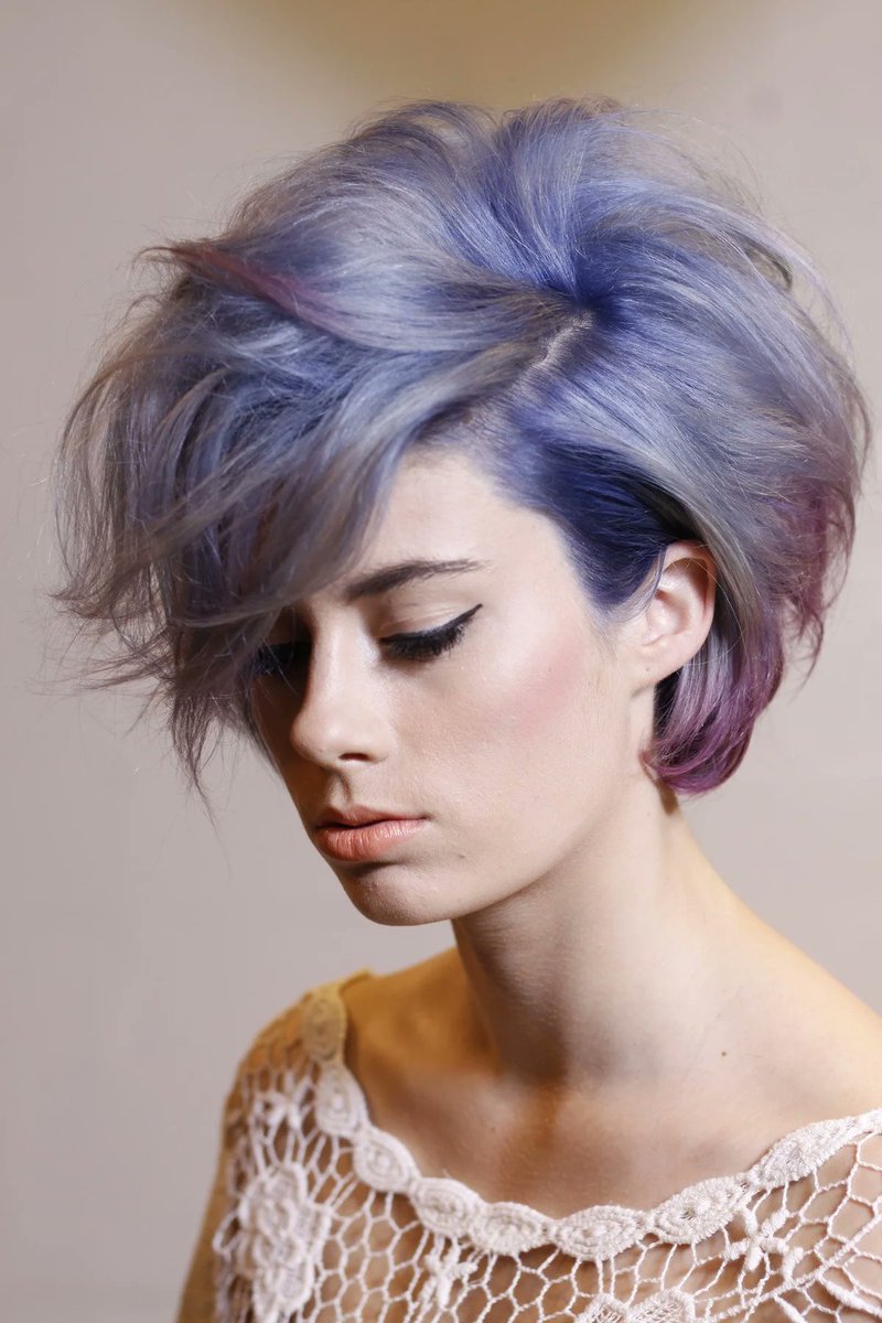 Если вы не знаете, как стилизовать короткие волосы, мы предлагаем вам добавить оттенок цвета, чтобы оживить весь образ. Здесь, например, короткая длина волос прекрасно дополняется оттенком лаванды, добавленным по краям прически.
